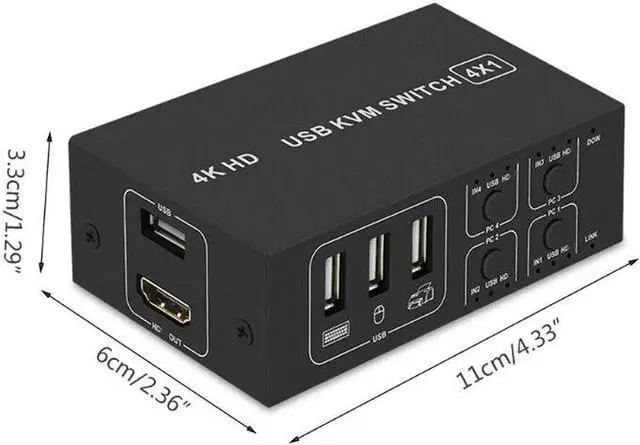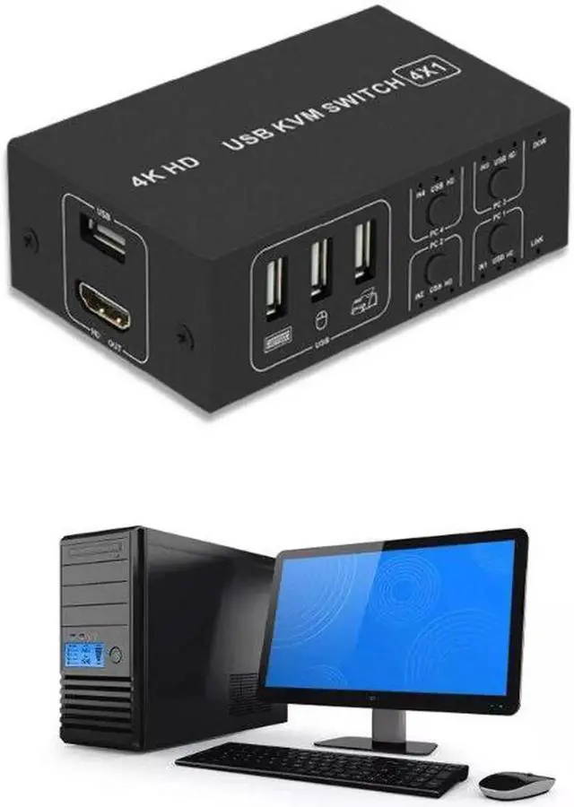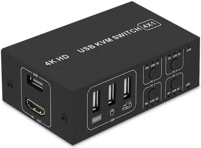 H052 USB Switch Selector KVM Switch 4 Computers Sharing 1 Monitor KVM HDMI- Switcher Box Hub for Mouse Keyboard Scanner