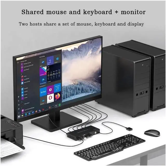 2 computers share one set of keyboard and mouse and monitor, 4 USB 2.0 devices for one button swapping. Saving your space, make your work and life easier and smarter.