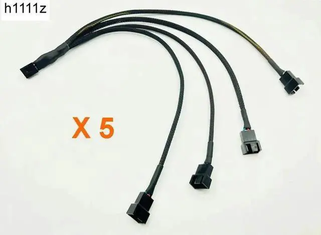 • 5PCS 30cm Black Braid Cable Splitter One 4 Pin Female Connector Splits to Four 4pin Male Connectors for PWM 3/4 Pin Computer Fan
