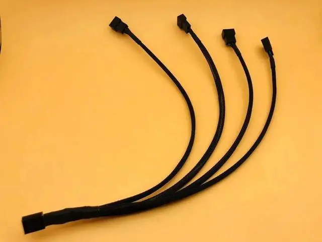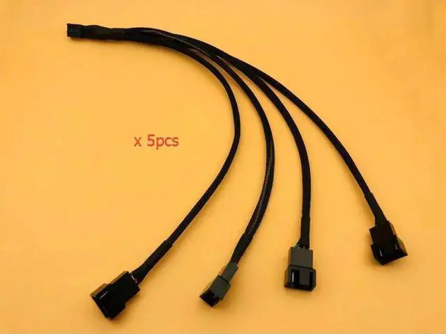 • 5PCS Black Braid Cable Splitter One 4 Pin Female Connector Splits to Four 4pin Male Connectors for PWM 3/4 Pin Computer Fan 30cm
