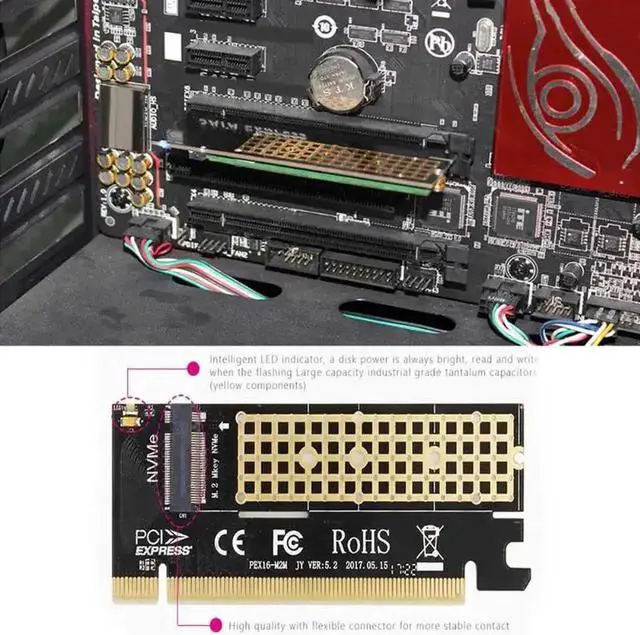 Model Number: PCI-E M. 2 NVMe SSD to PCI-E 3.0 16x M Key Port Adapter