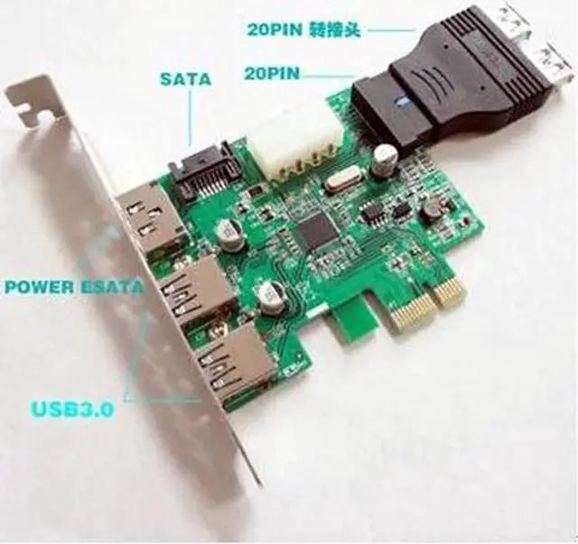 • Power Over eSATA eSATAp II & 2PCS USB 3.0 USB3.0 to PCI-E PCI Express Card w/ Motherboard 20 pin Connector