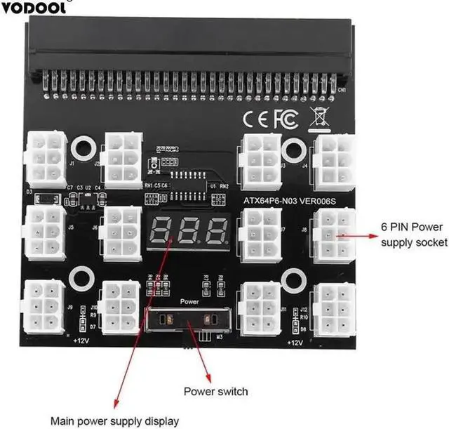 • 12V PCI Express Breakout Board For HP DPS Server Power Splitboard Supply GPU For Mining Miner With 12X 6Pin PCI-E Port