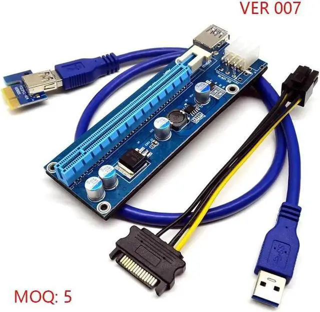 • VER007 PCI-E USB3.0 Express 1x -16x Extender Riser Card Adapter Power Cable 6Pin