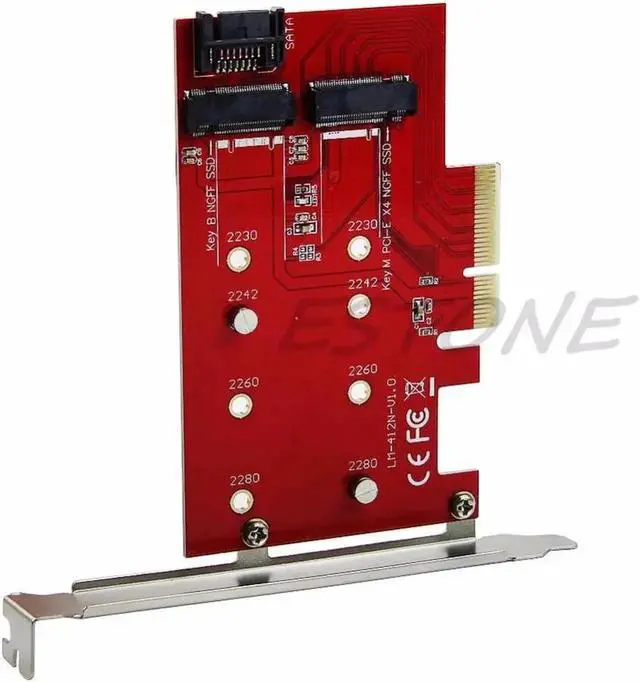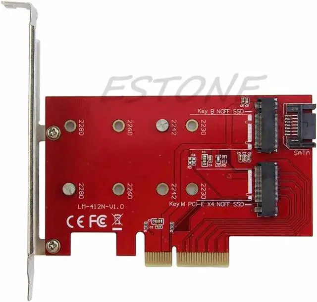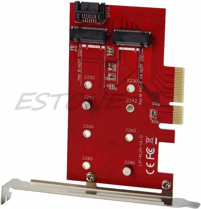 • 2 Ports NGFF M.2 B+M Key SSD to PCI-E PCI Express 4X 4 Lane Converter Card Adapter