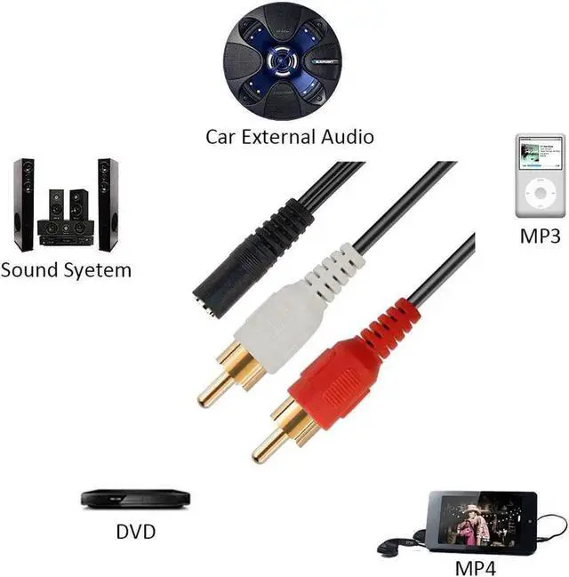 • 2 RCA Male to Female 3.5mm Jack Aux Stereo Audio Cable Hot