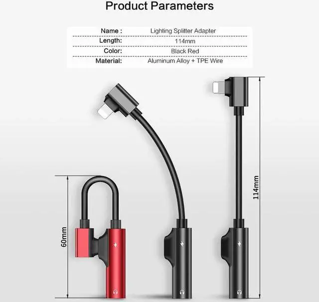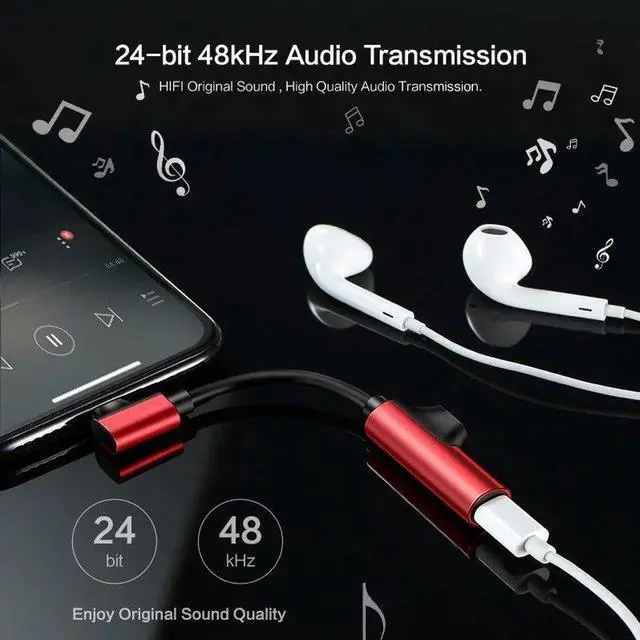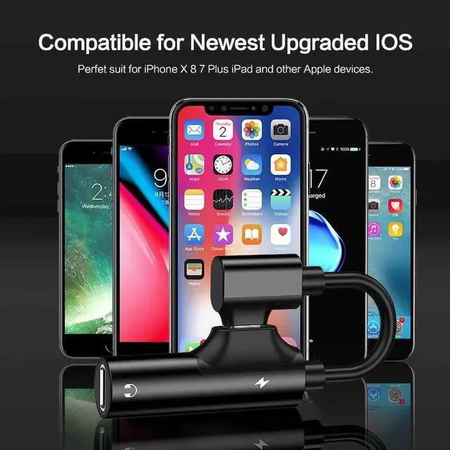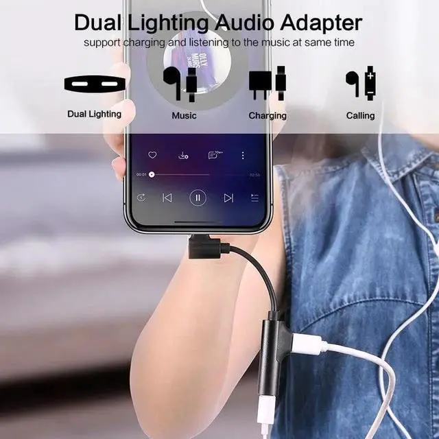 • 2 in 1 For Lightning to 3.5mm Audio Adapter Jack Charging Converter For iPhone 7 8 X Cable Splitter Headphone USB Adapter