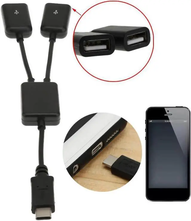 USB 3.1 Type C OTG HUB Cable 2 in 1 USB C 3.1 Male to Female Plug Cord Splitter Type C to Dual USB2.0 Converter Adapter Wire