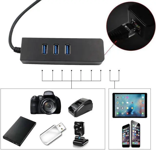 USB 3.0 Hub Gigabit Ethernet Lan RJ45 Network Adapter Hub with 3 Ports USB to RJ45 External Network Cable Splitter for Mac PC
