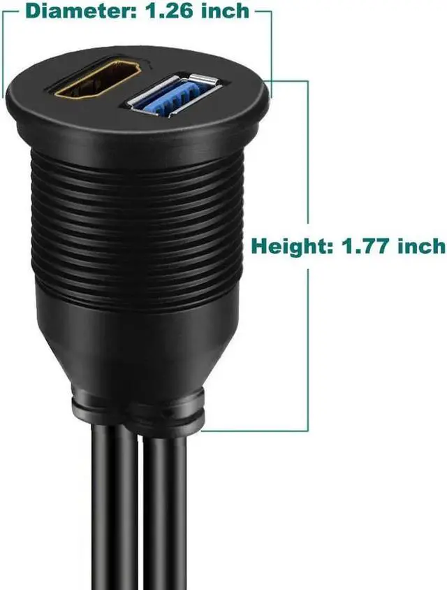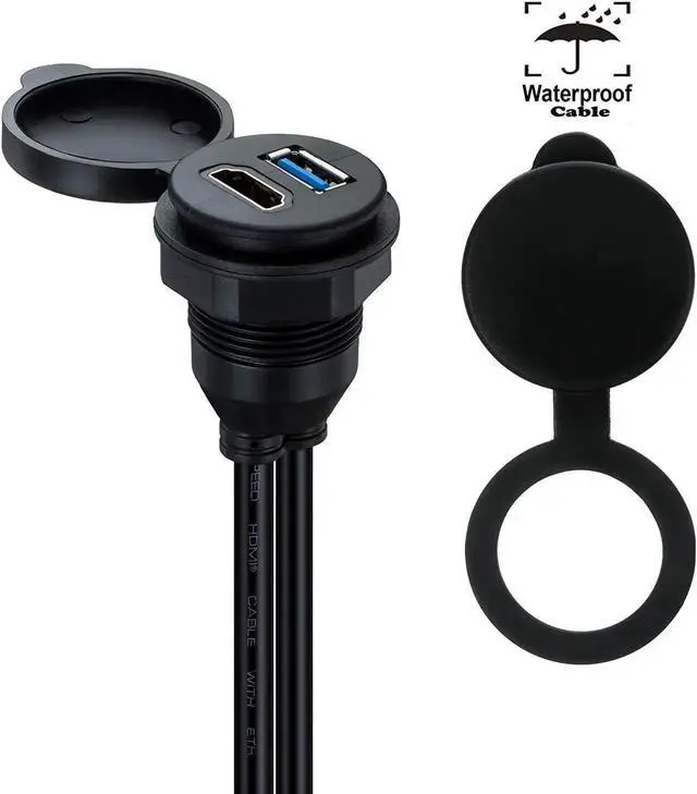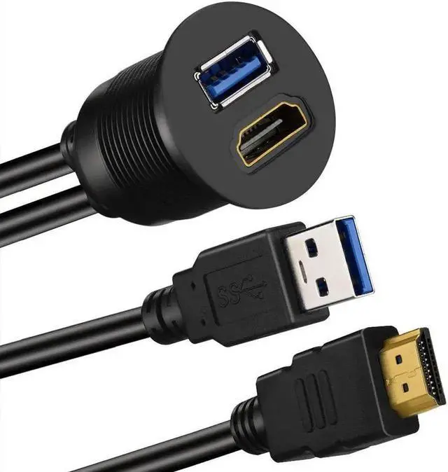 • USB 3.0 and HDMI to HDMI + USB3.0 AUX Extension Dash Panel Waterproof Car Flush Mount Cable For Car Boat and Motorcycle 2M