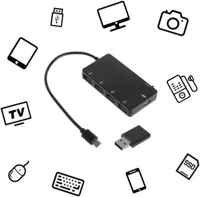 Micro USB OTG 4 Port Hub Power Charging Adapter OTG HUB USB Splitter Cable for Android Windows Laptop PC