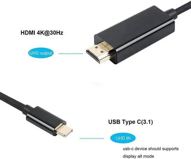 • Type C USB C to HDMI Cable 6FT USB 3.1 (Thunderbolt 3 Compatible) For Tablet