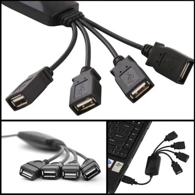 • Practical 4 ports USB cable expansion splitter adapter for laptop PC USB 2.0