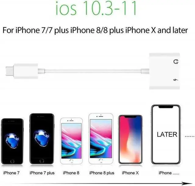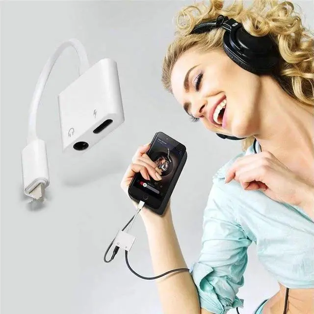 • 2 In 1 3.5mm Audio +Charger Adapter for IPhone 7 8 Plus X XR XS MAX IOS Splitter Earphone.Headphone Aux 3.5 Jack Charging Cable