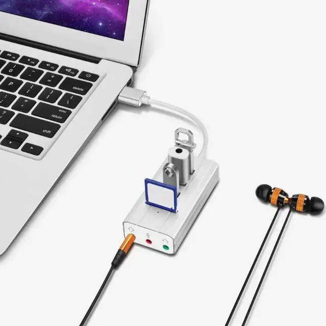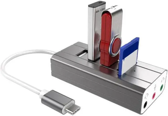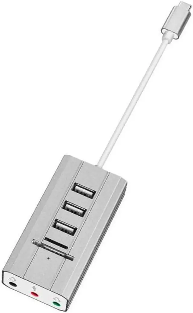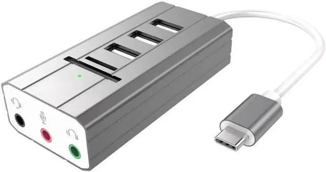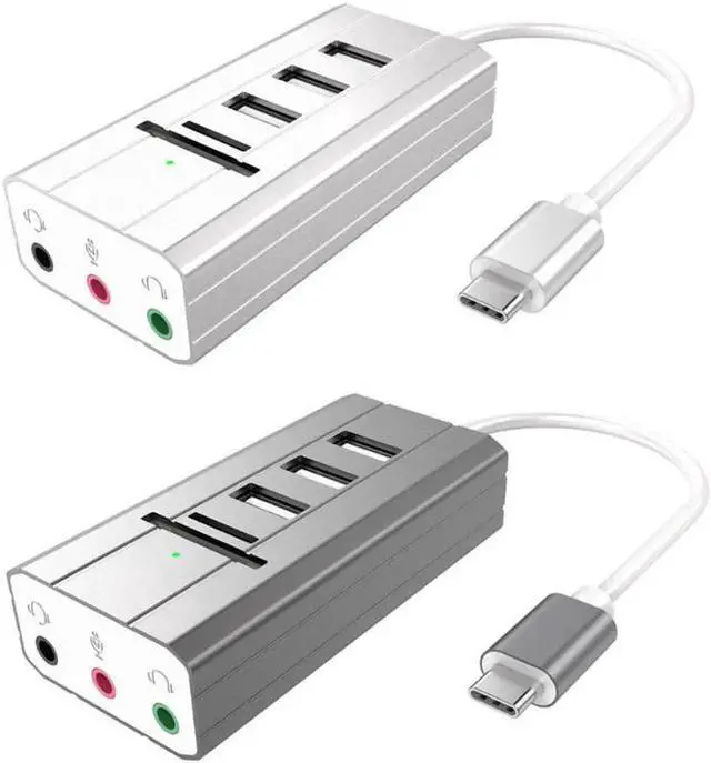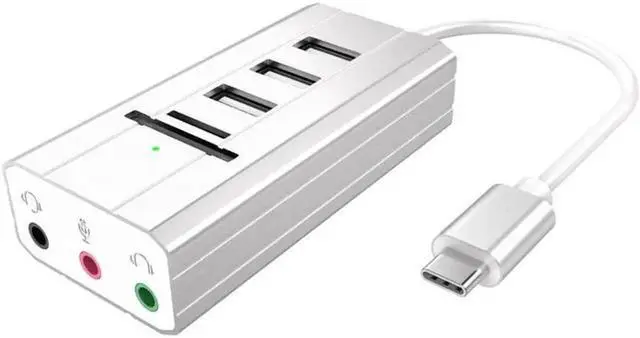 • USB C Type C Hub to 3 Port USB 2.0 Hub + Headphone + Mic Ports Multi Function Concentrator Sound Card Multi Ports Splitter