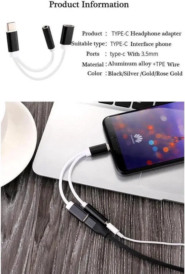 • 10 Packs Type C Splitter Cable Usbc to 3.5mm AUX Audio Jack Headphone Adapter Charger Converter For Huawei Xiaomi Samsung Motorola