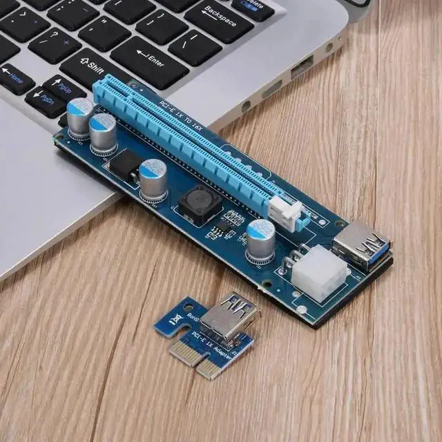 • PCI-E 1X to 16X Extender Riser Card 6Pin Power Adapter Cord with LED Indicator Riser Card for Bitcoin Miner Mining