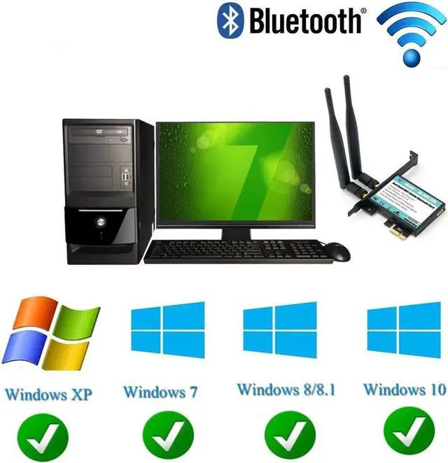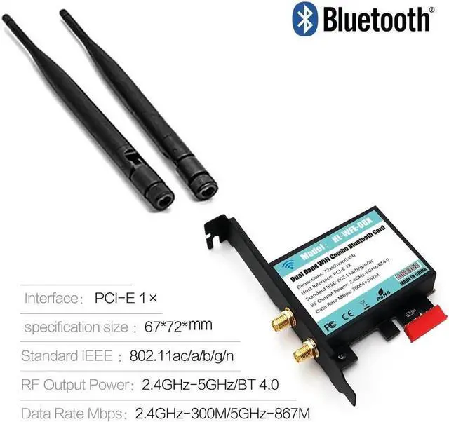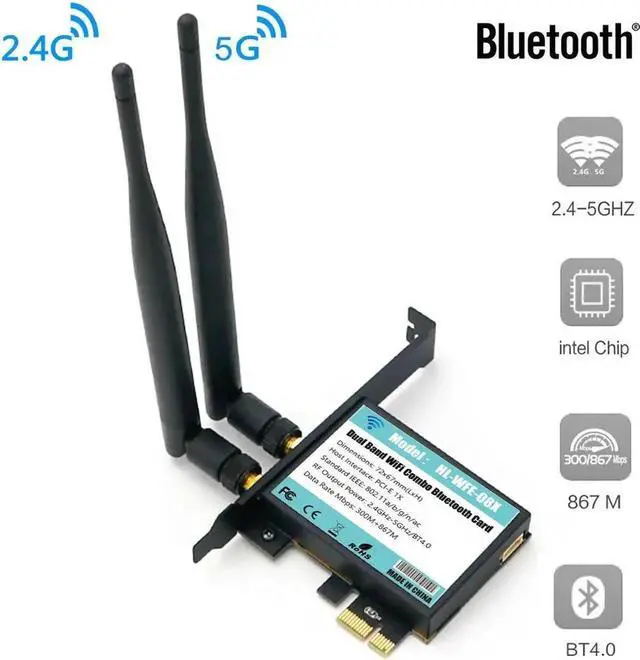 • 802.11 AC A/B/G/N/AC 7265 Module to PCI-E 1X Desktop Wifi Card Adapter Bluetooth 4.0 AC1200 2.4Ghz-300Mbps/5Ghz-867Mbps Bracket