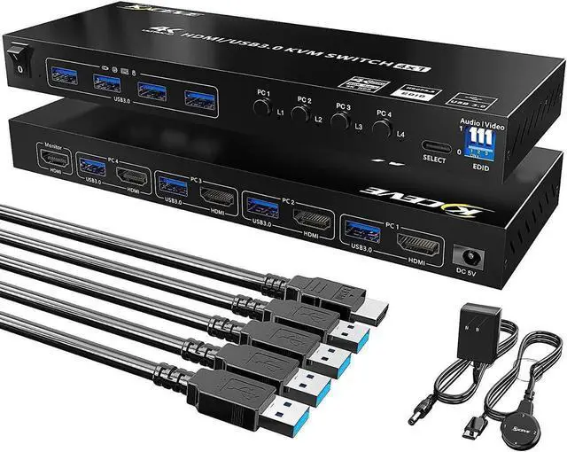 • High Definition Multimedia Interface 4k@60hz Kvm 4 In Out Multi Monitor Switcher Controls Four Hdmi Interfaces Of Usb 3.0 Sharer