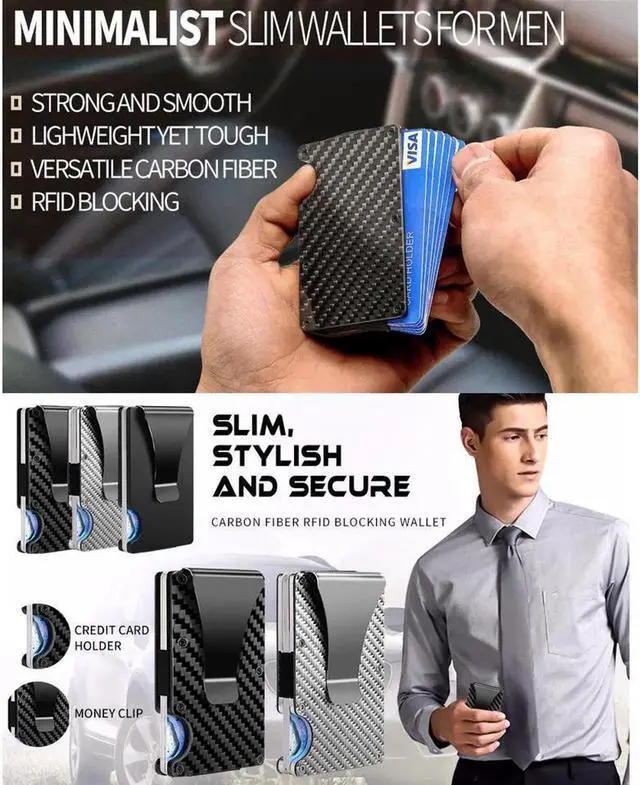 Carbon Fiber Walle -Metal Money Clip Wallet- RFID Blocking - Slim Metal Wallet ,Mens Wallet