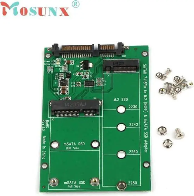 • Mecall 2 in 1 Mini PCI-E 2 Lane M.2 And mSATA SSD To SATA III 7+15 Pin Adapter