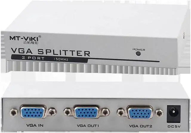• MT-VIKI 2 Port VGA Splitter 150MHz signal amplifier 1 input 2 output Two monitors display the same picture MT-1502-K