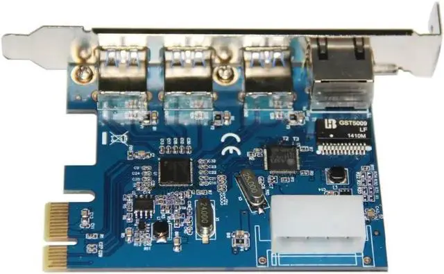 • Desktop PCI-E to 3-Port USB 3.0 + USB 3.0 Ethernet RJ45 Port Expansion Card