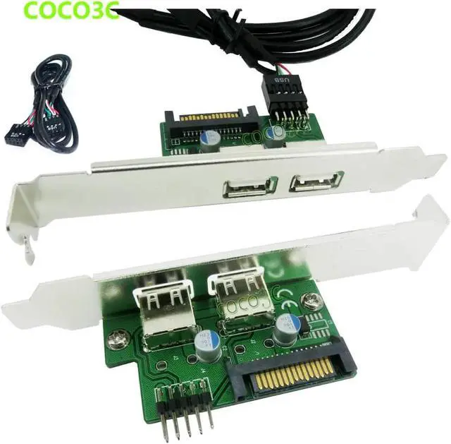 • USB Hub 9pin USB 2.0 pin header to Dual USB2.0 port converter card + Female Pin cable 15Pin SATA power PCI express bracket