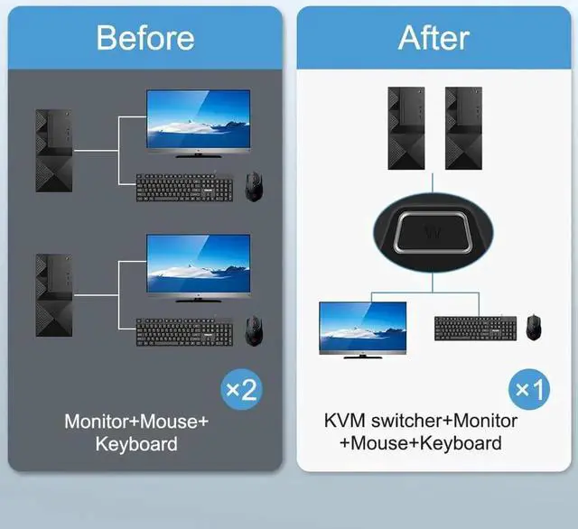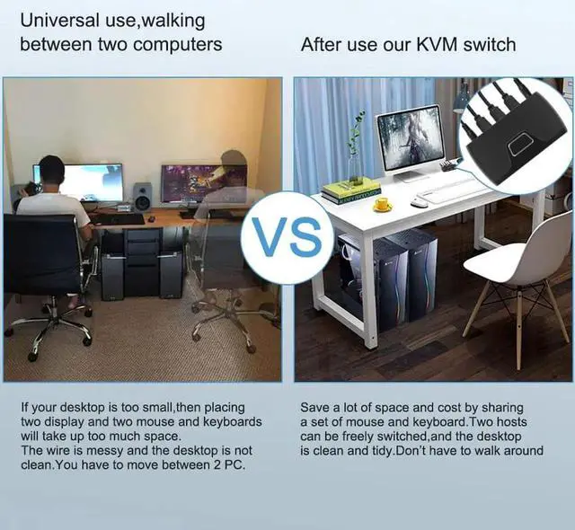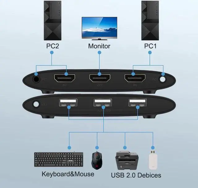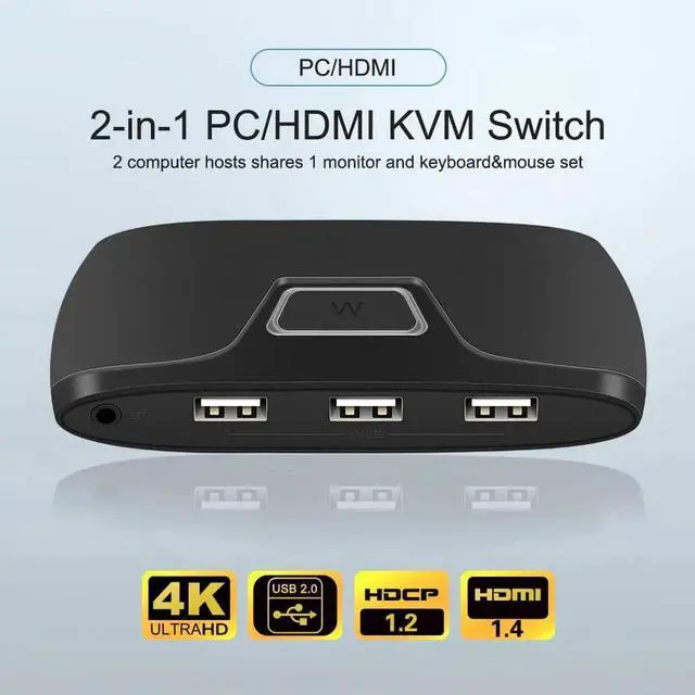 • KVM HDMI Switch 4K USB Splitter 2 in 1 Supports Digital Monitor For Laptop Share Mouse Keyboard Monitor Printer HOT