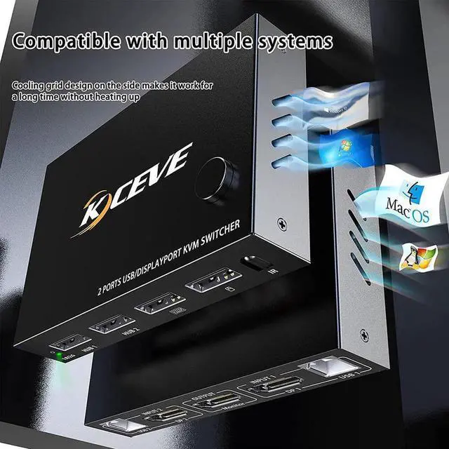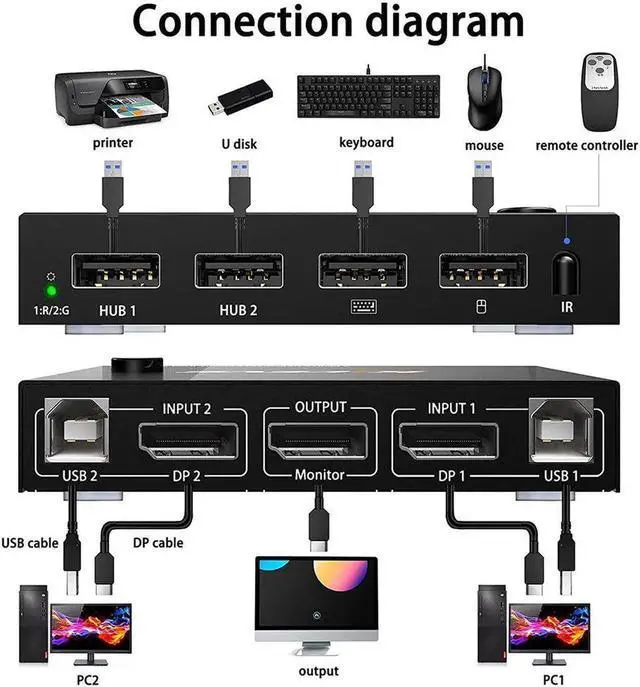 • Bi-Direction Switch USB PC Dual Monitor DP KVM Switcher Adapter Displayport 1.4 for Shared Printer Mouse Keyboard for PC Laptop
