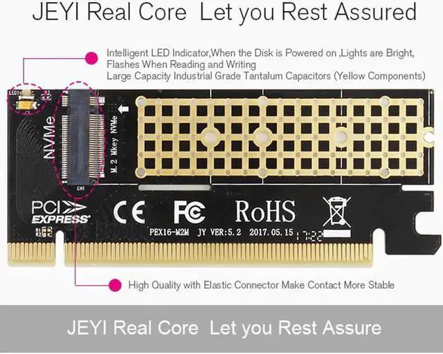 JEYI Cool Swift NVME M.2 X16 PCI-E Riser Card 2280 Thermal Conductivity Silicon Wafer Cooling Dust-proof Aluminum Sheet Gold Bar