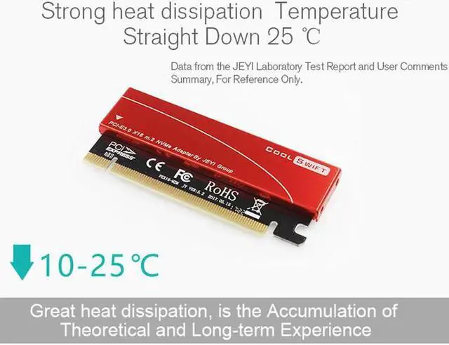 • JEYI Cool Swift NVME M.2 X16 PCI-E Riser Card 2280 Thermal Conductivity Silicon Wafer Cooling Dust-proof Aluminum Sheet Gold Bar