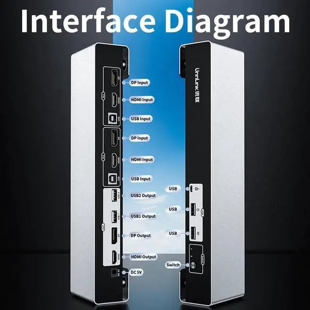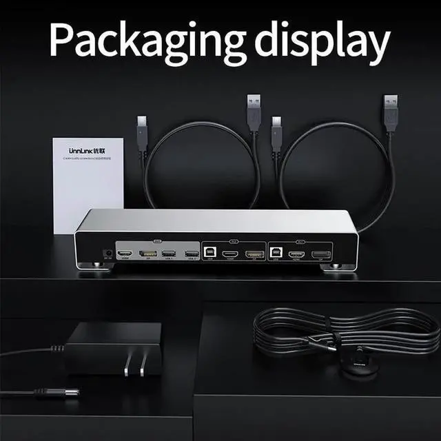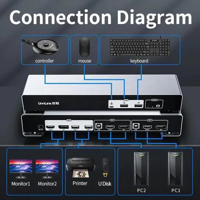• Unnlink KVM Switch HDMI+DP Switch KVM 4K Dual Monitor 2x2 Sharing 2 Hdmi 2 Display 4 USB For Mouse Keyboard Printer Udisk
