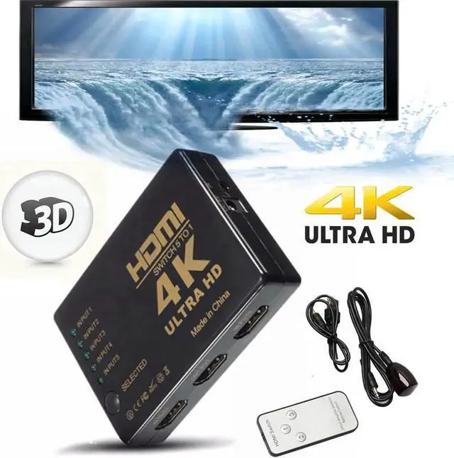 • 5 HDMI Port Splitter 3D Ultra HD 4K HDMI Switch Switcher 5 Input 1 Output UHD HDMI Adapter Converter for XOBX 360 Android HD TV
