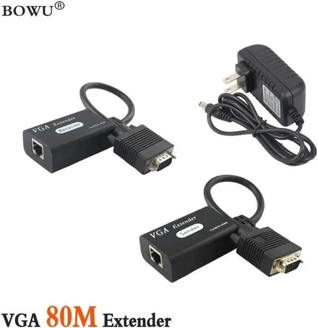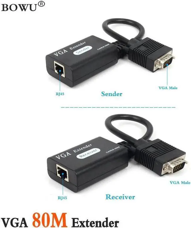 • 80M VGA Extender by Cat5e/6 VGA Male To Lan Cat5e Cat6 RJ45 Ethernet Net Cable Female Adapter Amplifier Converter