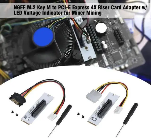 • Add On Cards NGFF M.2 Key M to PCI-E Express 4X Riser Card Adapter LED Voltage Indicator