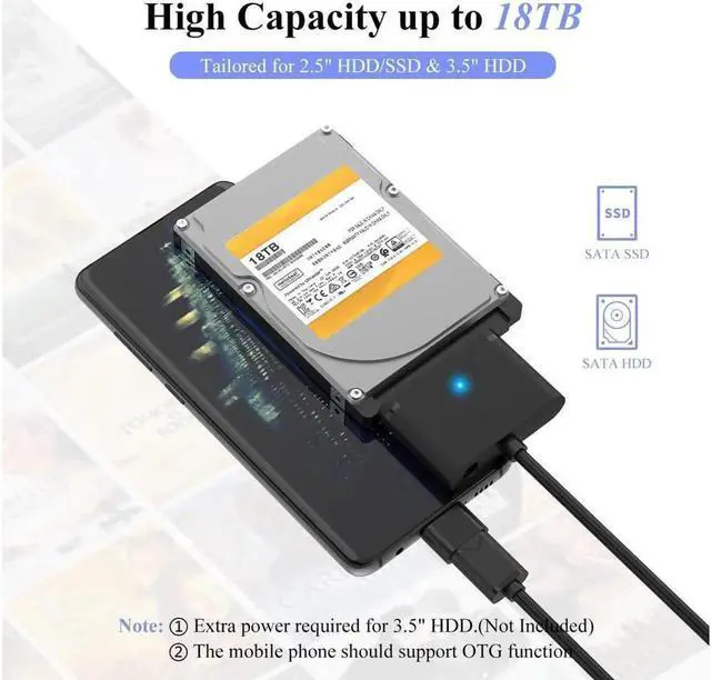 Widely Compatible: Widely compatible with Windows 11, 10, 8, 8.1, 7, Vista, XP or above, Mac OS 9, 10, 11 or later, Linux, Chrome os etc. It fits with most 2.5" SATA III / II / I HDD & SSD and 3.5" HDD up to 18TB. [Extra power adapter[12V/2A ] required for 3.5" HDD (Not included) ]