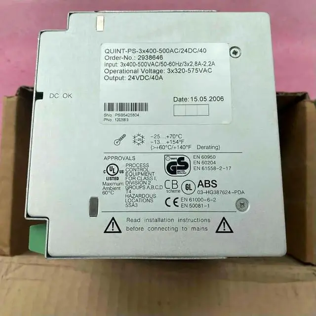 • 2938646 QUINT-PS-3X400-500AC/24DC/40 QUINT POWER 24VDC/40A Switching Power Supply Fast Ship Works ly