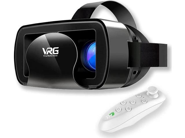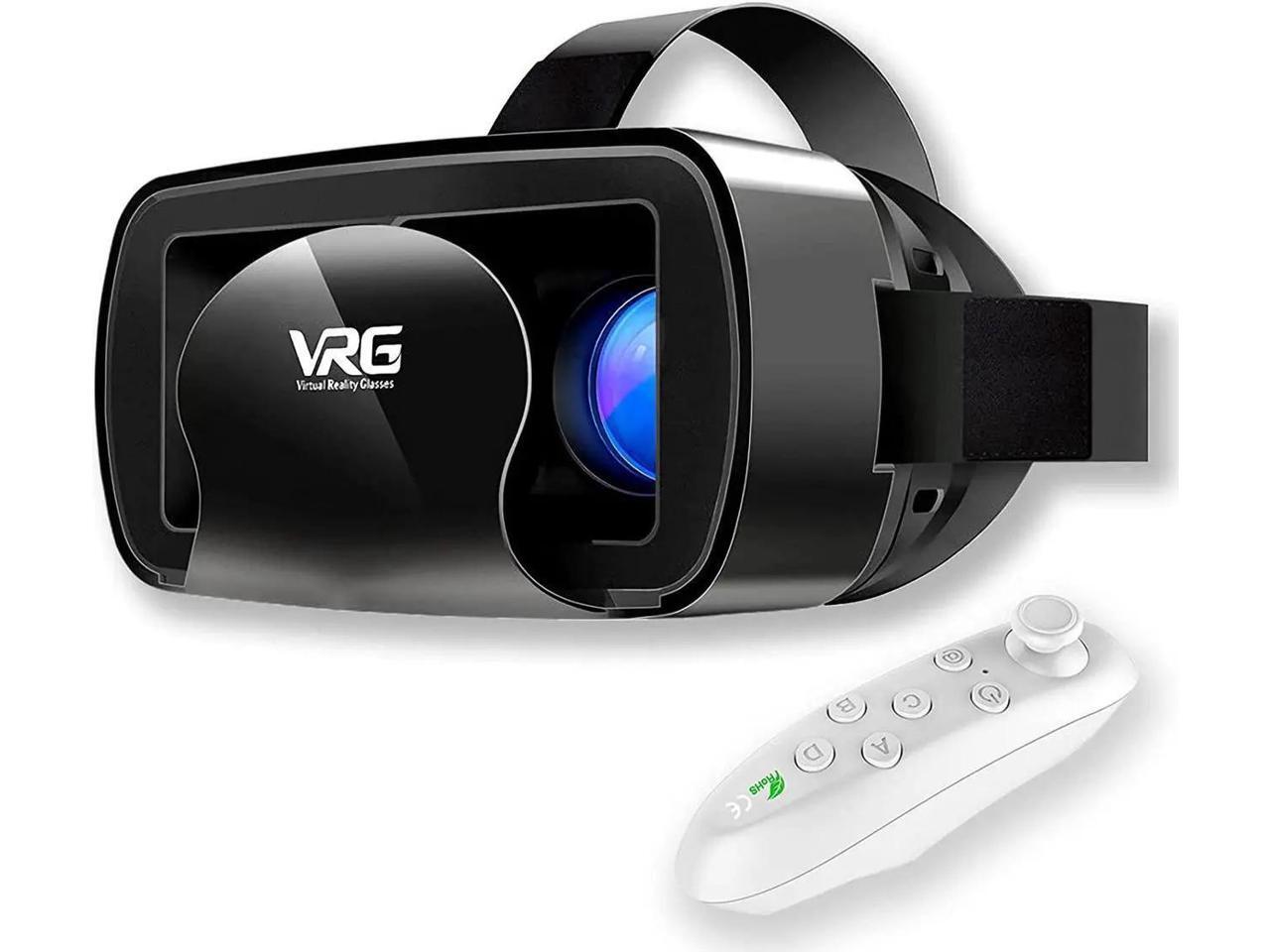 VR Headset with Controller Adjustable 3D VR Glasses Virtual Reality Headset HD Blu-ray Eye Protected Support 5~7 Inch for Phone/Android (Black)