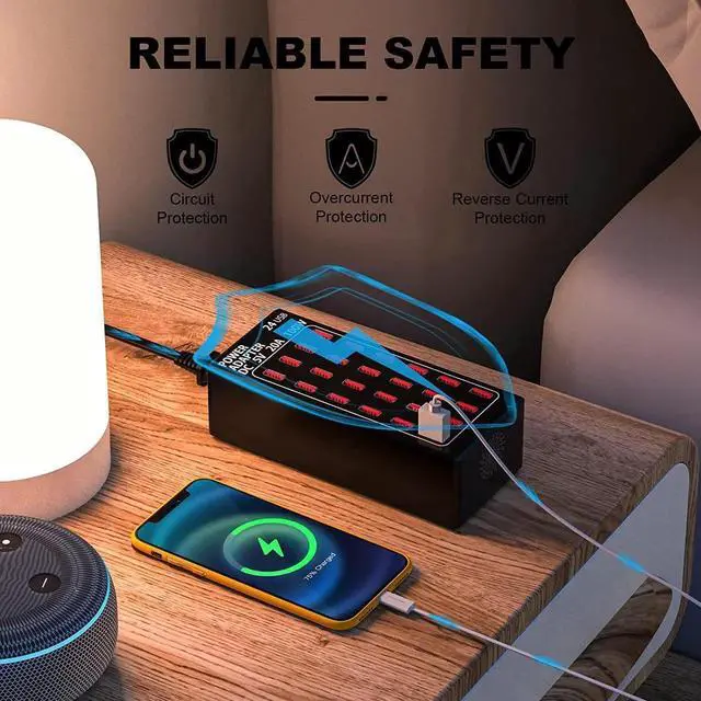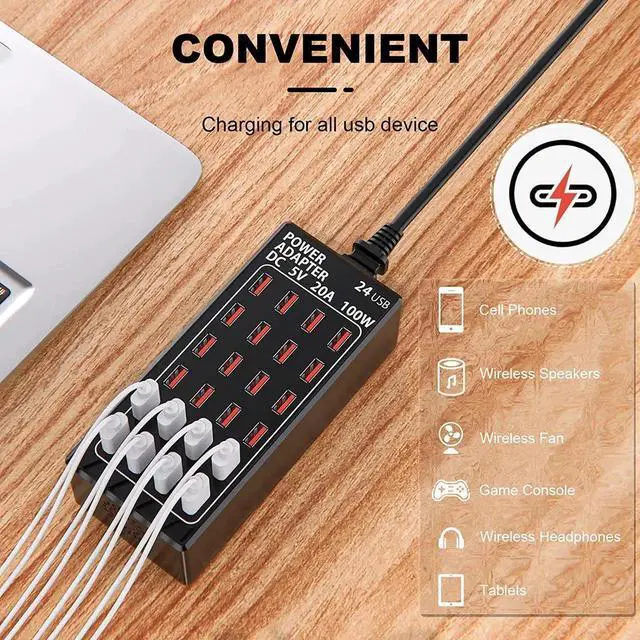 with 24 charging ports, you won't have to decide which device to charge first. Plug them all in and let the intelligent power allocation provide the optimal power level to each device for best overall performance