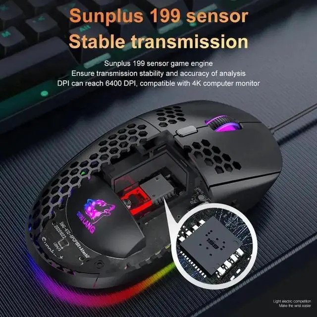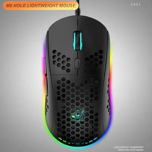 Ultralight Honeycomb Design: The M8 gaming mouse features an ultra-light honeycomb shell, making it comfortable for long gaming sessions and easy to maneuver.
