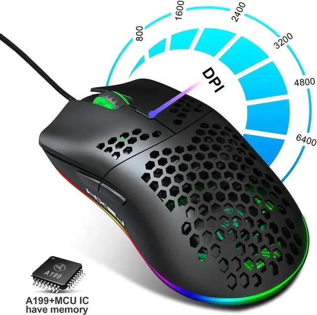 USB Gaming Mouse, Lightweight Gaming Mouse, 6 Button 6 RGB Backlit, up to 6400 DPI, Wired PC Gaming Mouse for Mac Laptop Computer (Black)
