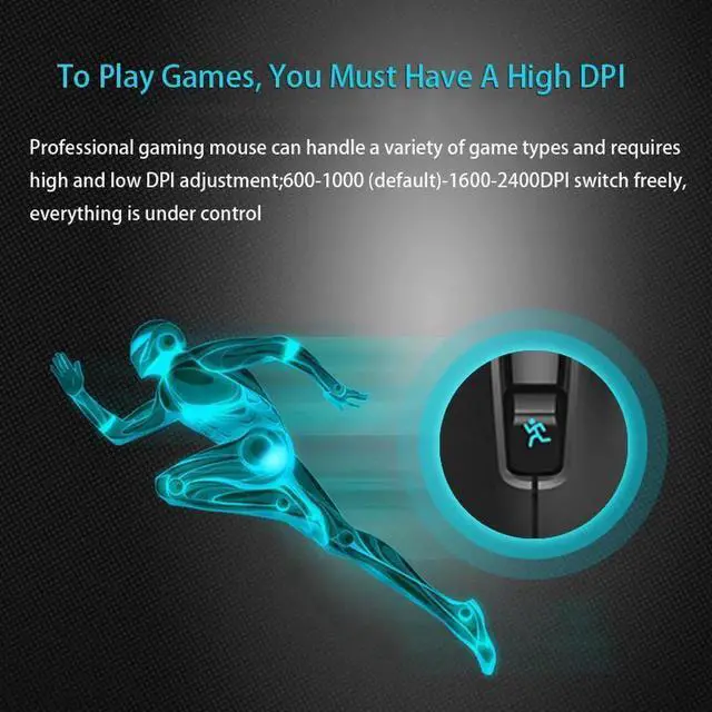 To play games, you must have a high DPI, Professional gaming mouse can handle a variety of game types and requires high and low DPI adjustment; 600-1000 (default) -1600-2400DPI switch freely, everything is under control