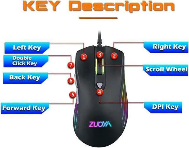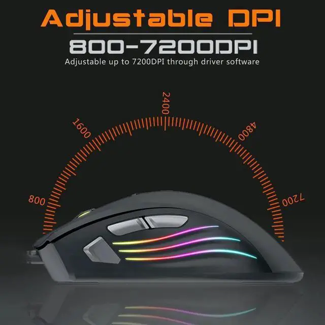 • High Precision Professional Gaming mouse. Gaming mouse with default 6 DPI levels available from 800 to 7200 DPI. Easily adjust to instantly match mouse speed to different gaming scenarios.