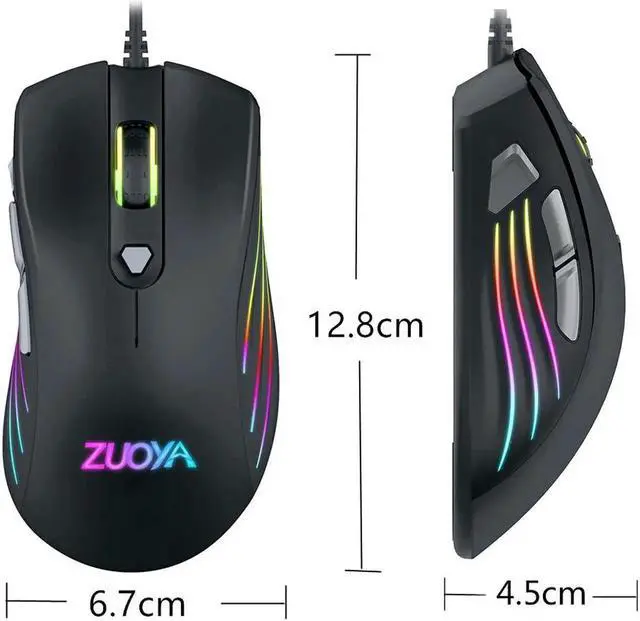 The wired laser 7200 DPI gaming mouse comes with custom driver software with 7 programmable profiles, including basic settings, DPI switching and colorful LED lighting effects. The lighting effects are adjusted by the brightness level and breathing speed. If the mouse stays out of work for 8 minutes, it will turn to power saving mode, press any button to restart it.