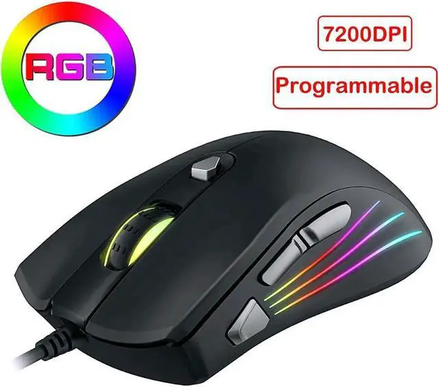 7200 DPI, 7 Programmable Buttons, LED Backlit, Ergonomic Optical PC, Comfortable Computer Gaming Mice for Windows 7/8/10/XP Vista Linux, Black