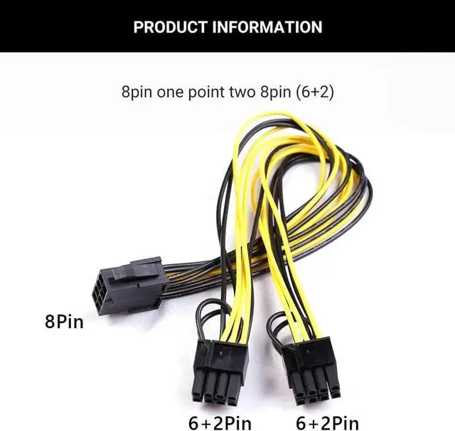 • 10pcs 8 Pin PCI Express to Dual PCIE 6+2 Pin Power Cable Motherboard Graphics Card PCI-E GPU Power Data Cable 21/50cm Splitter