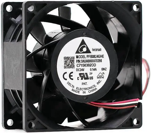 Brand Delta DELTA Delta Electronics Public Co., Ltd. Model PFB0824GHE Size 80*80*38mm Bearing Double Ball Bearing Standard Voltage 24V Current 0.54A Maintain optimal continuous running time of 10, 000 hours It features maintenance-free double ball bearings, long service life, sufficient heat dissipation air volume and air pressure. It is very suitable for high-end equipment fan replacement, such