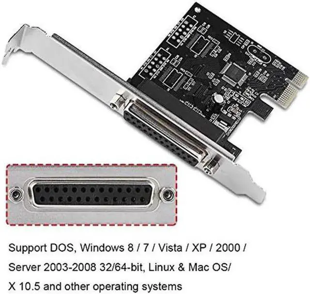A PCI Express single parallel port card that can be connected to parallel devices such as printers, programmers, scanners, etc. Supports a variety of mainstream operating systems, including for Windows, MAC and Linux. The product uses a PCI Express x1 slot that can be installed in a variety of PCI Express slots (including 4x 8x16x).