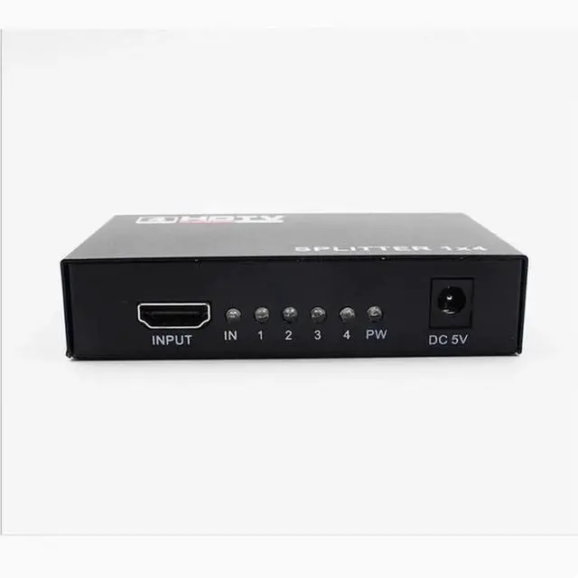 The HDMI splitter can connect one HD signal source to four HD display terminals. It can easily distribute the high-definition signal generated by one high-definition signal source to four high-definition signal supporting monitors or projectors. In addition, when it is connected to the signal output of an HDMI cable, the HDMI signal can be amplified. Supports 3D and 1080P